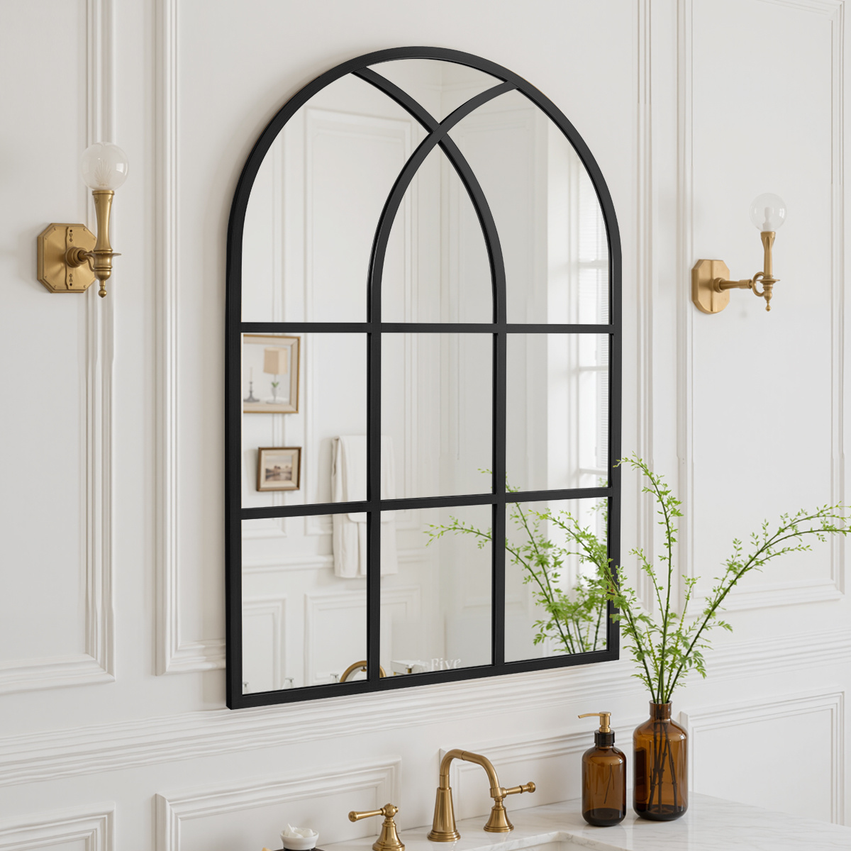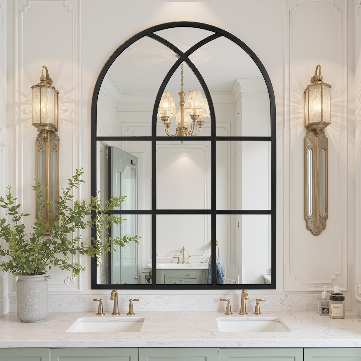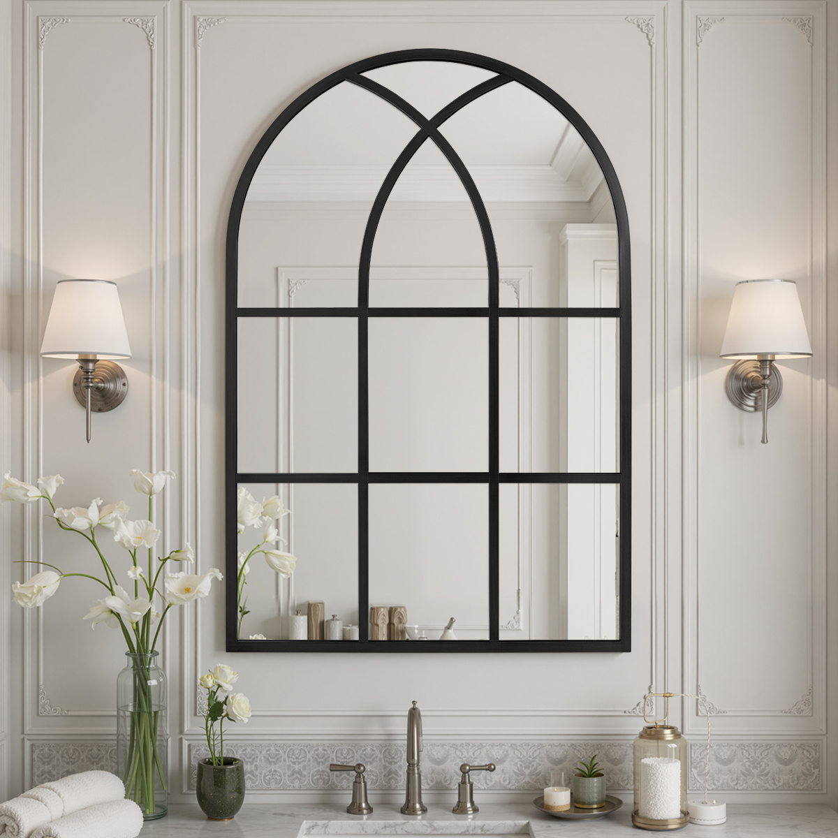 Elegant Arched Window-Shaped Modern Minimalist Bathroom Vanity Mirror | Black Rust-Resistant Aluminum Frame, Wall Mount, Polished End, Use Without Electricity, Recommended for Surfaces by MELODIEUX